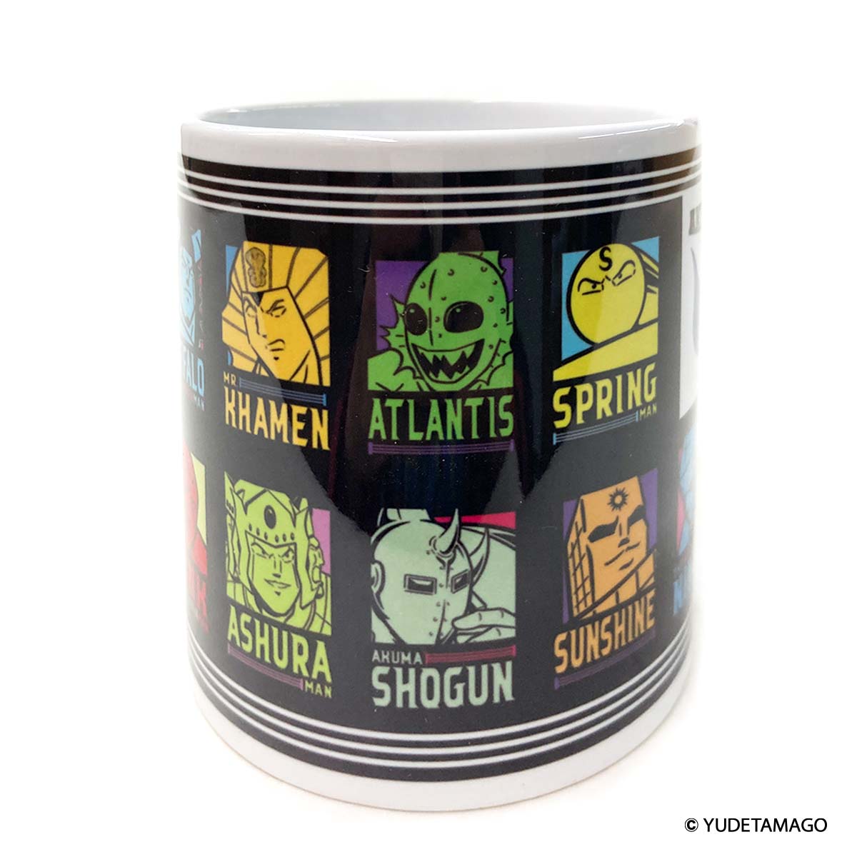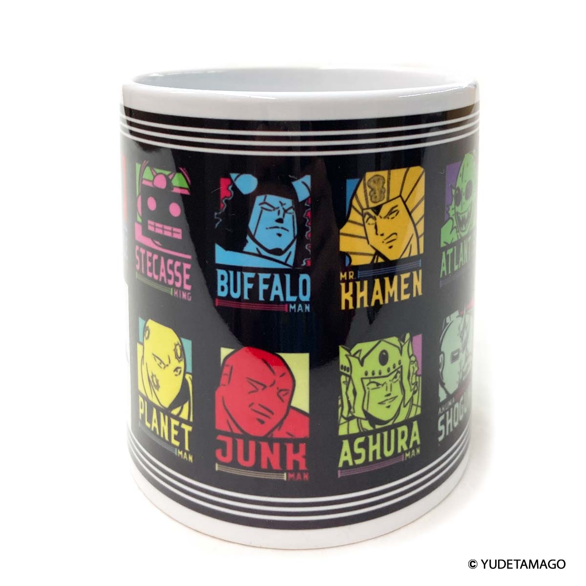 大きめサイズの340ml。ポートレート風デザインの悪魔超人14人が勢揃いのカラフルなマグカップです。