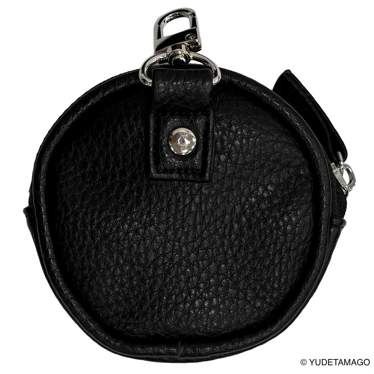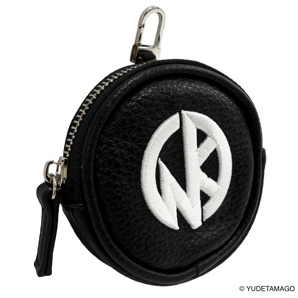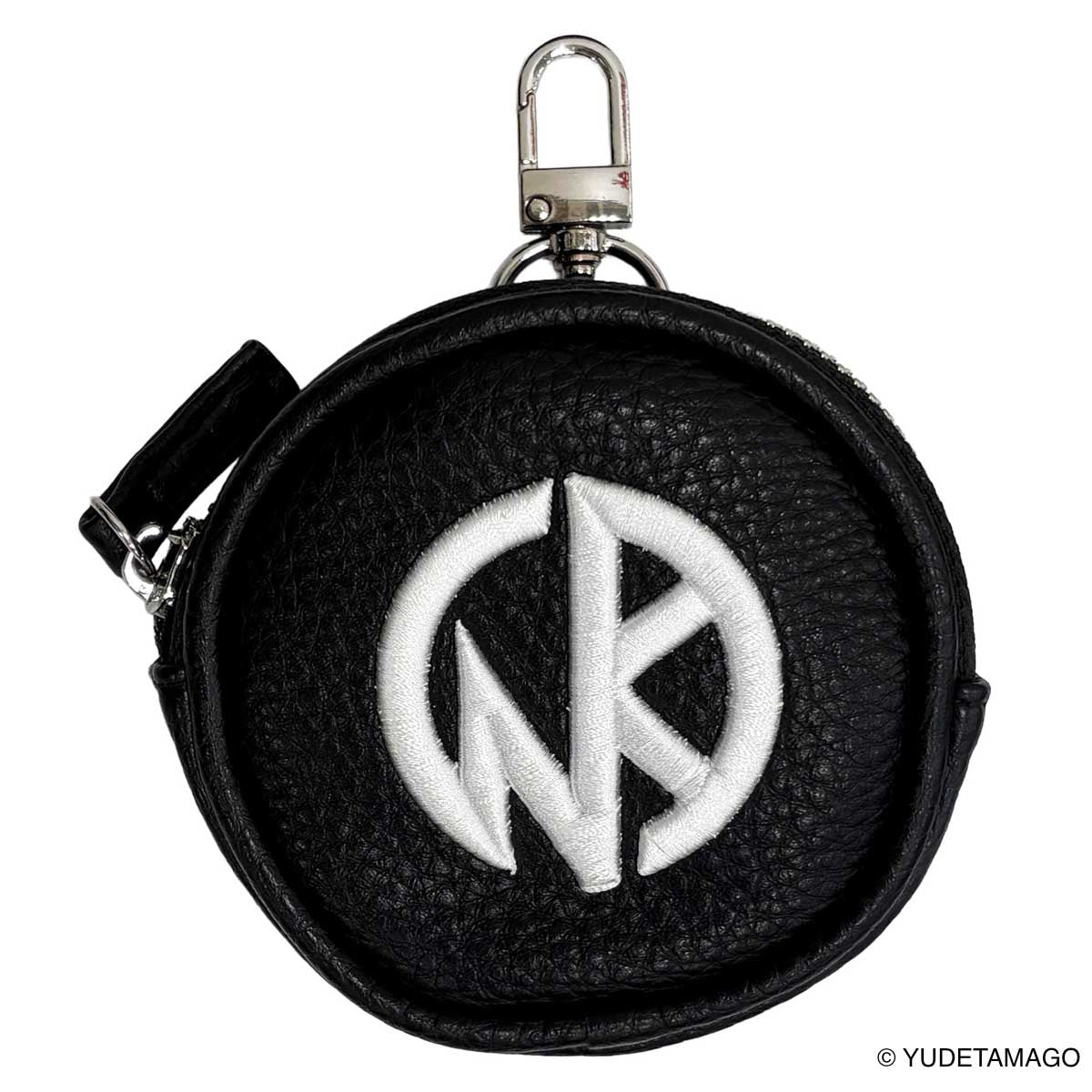 フェイクレザーの丸型ポーチに KINマークを刺繍。