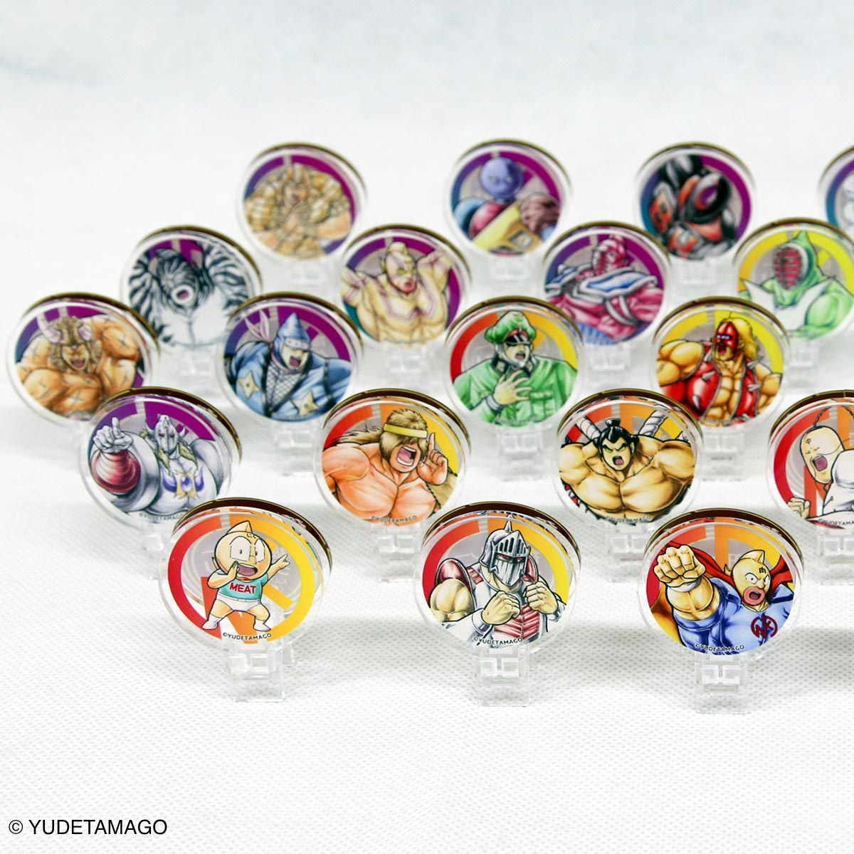 「カレクックのアタマカレー」に封入されているキャラクターカードと同柄のアクリルクリップを用意しました。是非とも“推し超人”を机のお供にして下さい。全30種(ランダム販売です)!